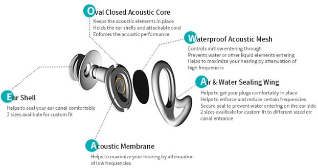 These ear plugs contain acoustic filters with an advanced mesh that prevents water from going into your ear canal whilst not obstructing sound to come in.